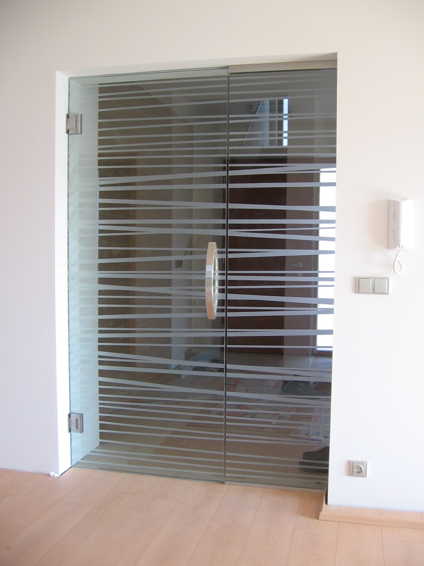 Realizace celoskleněné stěny s bočním fixním dílem, nadsvětlíkem a posuvným dveřním křídlem.